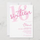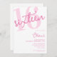 Une simple invitation moderne de 16ème anniversaire avec une élégante typographie de script de calligraphie et un design minimaliste en rose et blanc.