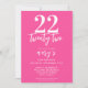 Invitation 22e anniversaire moderne rose élégantUne invitation simple moderne 22e anniversaire avec typographie de script de calligraphie élégante et design minimaliste en rose et blanc.