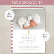 Personnalisé Moderne Pink Stripes Religieux Croix Photo Baptême Invitation.