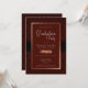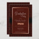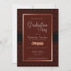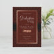 Une invitation à la fête de graduation vintage et rustique moderne avec un cadre damassé noir et bordeaux riche qui a été modernisé avec une bordure métallique en cuivre/or rose.