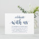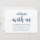 Carte d'invitation sur le thème Moderne Rustique, écriture Bleu Marine (avec titre de carte : Célébrez avec nous). Elle est parfaite pour votre réception de mariage en fuite / fête de célébration post-mariage. Ajoutez vos détails dans la même police / lettrage noir.