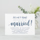 Carte d'invitation à thème Moderne Rustique, Écriture Bleu Marine (avec titre de carte : mangeons et buvons, parce que nous sommes mariés). Elle est parfaite pour votre réception de mariage intime / fête de célébration post-mariage. Ajoutez vos détails dans une police / lettrage noir assorti.