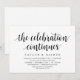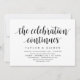 Carte d'invitation sur le thème Moderne Rustique avec écriture noire (avec le titre de la carte : la célébration continue). Elle est parfaite pour votre réception de mariage après une fuite de noces / fête de célébration après le mariage. Ajoutez vos détails avec une police / écriture noire assortie.