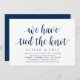 Carte d'invitation à thème écriture manuscrite bleu marine (avec titre de carte : nous avons noué le nœud). Elle est parfaite pour votre réception de mariage en elopement / fête de célébration post-mariage. Ajoutez vos détails en police / lettrage noir assorti.
