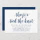 Carte d'invitation à thème écriture avec police Bleu Navy (avec titre de carte: ils ont fait le nœud). C'est parfait pour votre réception de mariage en elopement / fête de célébration post-mariage. Ajoutez vos détails en police / lettrage noir assorti.