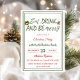 Invitation vos proches à votre fête de Noël avec notre invitation à la fête de Noël. "Mangez, buvez et soyez joyeux" est présenté dans la typographie festive avec des cloches de Noël et une branche d'aqua saint. Les détails de votre fête sont affichés dans une police élégante dans un cadre double. Sur le dos, un arrière - plan blanc orné de points verts peints à la main.
