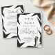 Cette élégante faire-part de mariage en noir et blanc conviendra parfaitement à une mariage moderne. Le design simple présente une élégante calligraphie noire, un cadre noir chic et une illustration de mariée et de mariée sur un arrière - plan blanc propre. La carte d'invitation comprend les détails du mariage au dos au lieu de payer une carte d'enceinte séparée.