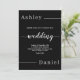Cette élégante faire-part de mariage en noir et blanc est parfaite pour un mariage moderne. le design simple présente une élégante calligraphie blanche sur un arrière - plan noir.