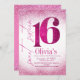 Moderne chic Sweet sixteen 16th Birthday Invitation Modèle est parfait pour 16th fête anniversaire. Cette première invitation à l'anniversaire comporte une police manuscrite moderne et amusante, une disposition simple avec un brillant rose et une parties scintillant rose.