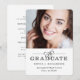 Cette invitation élégante et mise à jour en noir et blanc pour une fête de remise de diplômes classique présente une calligraphie et une typographie modernes sur fond blanc, avec un emplacement important pour la photo du diplômé. Toutes les informations sur votre fête sont inscrites au dos.
