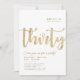 Simple blanc & or "Trente" personnalisées invitation de 30ème anniversaire avec typographie classe et moderne. Personnaliser avec le nom, l'âge et les détails de la fête.