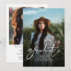 Présentez notre Moderne Script Graduate 2 Photos Graduation Invitation! Célébrez votre jalon académique avec élégance et style contemporain. Cette invitation comporte une police de script et de l'espace pour deux photos chères, créant un design personnalisé et moderne. Que vous soyez diplômé du lycée, de l'université ou d'ailleurs, cette invitation donne le ton parfait pour inviter des proches à se joindre à la célébration de votre succès. Réunissons-nous pour honorer vos réalisations et trinquer à votre brillant avenir ! Joignez-vous à nous pour une fête de remise de diplômes mémorable avec notre Modern Script Graduate 2 Photos Graduation Invitation!