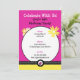 Cette invitation de fête adorable en rose vif et jaune présente des éléments de design ludiques tels que des pâquerettes, des points et des coccinelles. Le modèle vous permet de créer facilement vos propres invitations personnelles. Le verso comporte une zone facultative pour des détails supplémentaires sur la fête ou des notes, qui peuvent être personnalisées ou supprimées si elles ne sont pas nécessaires, laissant un fond simple à pois.