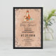 Une invitation baby shower conçue avec une image aquarelle d'une mère et d'un bébé renard. Le jeune renard regarde sa mère. Les deux sont assis sur une herbe. arrière - plan est un design vintage en brun doux.