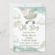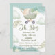 Cette aquarelle nuages oh garçon bébé garçon invitation à la douche comprend bébé garçon chariot en couleur vert olive avec ballons et nuages et feuilles aquarelle avec arrière - plan en vert menthe et vert olive.