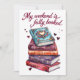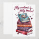 Un citation de amateur de livres confortable célébrant les week-ends passés à lire. Des livres empilés décoratifs avec des cœurs créent une ambiance de lecture chaleureuse et détendue pour les personnes qui aiment le temps calme avec des histoires.