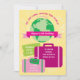 Invitation moderne et amusante sur le thème du monde entier. Présente le Earth Globe, les valises et les timbres de passeport dans le arrière - plan. Un design attrayant pour les yeux, idéal pour une fête d'anniversaire à tout âge. Ajoutez le nom d'anniversaire sur le ruban avant pour un point focal. La palette de couleurs est facile à mettre en correspondance avec les couleurs de la partie principale. Ajoutez votre propre libellé.
