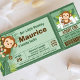 Swing sur et singe autour de nous ! Célébrez le safari de votre petite personne sur le thème de l'anniversaire avec cette mignonne Invitation de billets de singe Boy Jungle. Cette invitation d'anniversaire à thème safari présente un mignon singe balançant dans la jungle tropicale à l'entrée d'un zoo. Idéal pour la fête du premier anniversaire du singe, la fête du safari, la fête du zoo du singe.