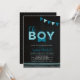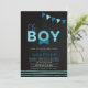Invitation Monnaie bleue et marine | Chalkboard "Oh Boy" Baby