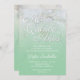 Photo turquoise clair ombre et marbre style numérique avec blanc rose et vert menthe éclatant bokeh. Faux marbre élégant dégradé de menthe invitation quinceañera. Une superposition ombre vert clair aide le texte de l'invitation à se démarquer. Ajoutez vos propres informations. La typographie présente un style calligraphique contemporain en blanc avec une ombre portée grise. Vous pouvez customiser les styles de police pour créer vos propres invitations de quincinera. Customisez le beau style de calligraphie contemporaine ou changez les couleurs de police et laissez tomber l'ombre. Couleurs design : gris clair, blanc, rose pâle, vert et menthe.