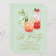 Invitations de fête d'anniversaire pour adultes avec des illustrations d'aquarelle de cocktails colorés et le texte du script "Let's Party". Le texte de l'anniversaire peut être modifié pour n'importe quel événement d'été ou cocktail. Police couleur or sur un arrière - plan vert pastel.