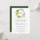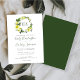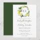 Ce design mariage présente les initiales monographiques de la mariée et du marié en vert encadrées par une couronne d'aquarelle de fleurs printanières jaunes et de feuillage vert. Personnalisez le texte avec les noms du couple dans un élégant script d'écriture verte et les détails du mariage en gris charbon. L'envers est une solide teinte de vert.