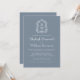 Cette élégante conception de faire-part de mariage d'inspiration vintage comprend une paire d'initiales en monogramme blanc en police serif ouverte au-dessus et au-dessous d'une ligne de séparation et entourée d'une crête acanthus sur un arrière - plan bleu poussiéreux. L'envers offre de l'espace pour les détails mariages sur un arrière - plan bleu poussiéreux solide, ainsi qu'un code QR que les invités peuvent scanner pour visiter votre site Web et RSVP, qui économise le coût d'impression et d'envoi de cartes RSVP séparées.