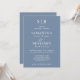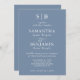 Un monogramme bleu poussiéreux classique initie des invitations de mariage faire-part de mariage parfaites pour un mariage dans un cadre formel.