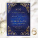 Invitation Monogramme classique Gold Frame Ornate Blue Mariag