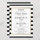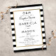 Doté d'un arrière - plan à rayures noir et blanc classique, cet élégant mariage couple invitation à la douche a une fausse bordure en feuille d'or encadrant vos couples détails de douche ensemble dans la typographie chic moderne. Conçu par Thisisnotme©