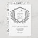Élégant monogramme avec Faire-part de mariage de conception de crête florale. Décoré dans un style classique noir et blanc, il présente une ligne d'art fleurie et feutrée. Prêt pour vous à customiser avec les détails de votre journée spéciale. Veuillez naviguer dans la suite Mariage Monogramme et Cimier Floral Blanc noir pour trouver les articles correspondants.