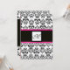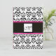 Invitation MONOGRAMME DAMASK, noir blanc, rose fuchsia violet