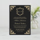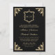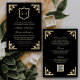 Invitation Monogramme de crête d'or QR Code Mariage noir