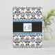 Invitation MONOGRAMME DE DAMAS,noir et blanc,bleu