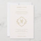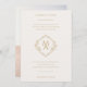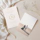 Ce faire-part de mariage classique est doté d'un monogramme moderne en forme de losange au centre, dont les initiales de la mariée et du marié sont bien visibles. Le monogramme est entouré d'une typographie classique dans un ton doré, ajoutant une touche d'élégance au design. Des détails floraux délicats viennent embellir l'invitation, lui conférant une atmosphère romantique et intemporelle. L'ensemble est sophistiqué et unique, ce qui en fait un choix parfait pour une mariage élégante et sophistiquée.