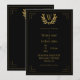 Invitation Monogramme Elegant Black Gold Leaf Mariage