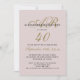 Elégante invitation raffinée d'anniversaire. Ici pour la célébration du 40e anniversaire, mais le numéro d'âge est personnalisable. Avec monogramme Lettres initiales, numéro d'âge et nom en calligraphie or manuscrite. Nettoyer chic chic chic pastel dusty rose vif arrière - plan et élégante typographie noire classe.
