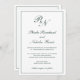 Style traditionnel All In One Faire-part de mariage avec un design simple et classique avec vos deux monogrammes initiaux et vos noms dans une calligraphie élégante à l'intérieur d'une mince bordure. Le dos contient vos coordonnées d'invités, ce qui élimine la nécessité d'une carte d'enceinte séparée. Tous les éléments de conception sont en vert de forêt sur un arrière - plan blanc et peuvent être changés dans l'outil d'édition de conception. Ces élégantes invitations de mariage All In One sont parfaites pour un mariage formel.