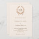 Un arrière - plan beige décoré d'une crête - Personnalisez et vos initiales, noms et détails monogrammes. Retour : ajoutez l'URL/le lien à votre site Web mariage pour plus de détails et/ou RSVP