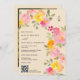 Célébrez votre mariage avec notre charmant code Qr Floral Mariage et la photo Invitation. Cette invitation magnifiquement conçue présente un délicieux éventail de fleurs peintes à la main dans des tons vifs de rose, d'orange et de jaune, accentués par le feuillage vert luxuriant. L'élégante bordure florale encadre parfaitement le texte, créant un look harmonieux et romantique. Un monogramme moderne dans le coin supérieur ajoute une touche personnelle, et un code QR moderne en bas à droite assure des options RSVP pratiques sur un arrière - plan beige modifiable en douceur. De plus, il y a un modèle photo personnalisable à l'arrière, vous permettant d'ajouter une photo chère du couple, rendant cette invitation non seulement belle mais aussi personnelle et mémorable.