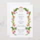 Magnifique invitation de mariage à l'aquarelle peinte à la main avec des fleurs tropicales colorées, de la verdure et des oiseaux disposés de manière délicate. Ce design présente également un simple monogramme d'initiales empilées dans un blason, donnant une atmosphère très personnalisée et peinte à la main à un prix abordable.