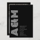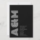 Présenter une faire-part de mariage captivante qui allie sans effort charme vintage et minimalisme moderne. Cette invitation comporte un monogramme audacieux et proéminent des initiales du couple, dessiné avec soin dans la police "Monoton" d'inspiration rétro. Sur fond de noir profond et intemporel, le monogramme prend le devant de la scène, évoquant un sentiment de sophistication et d'élégance. Avec un clin d'oeil au passé, la police "Monoton" insuffle à l'invitation une touche de nostalgie, rappelant les styles typographiques classiques qui dégagent un charme intemporel. La teinte noire profonde de l'invitation ajoute un air de formalité et de luxe sobre, donnant le ton à une affaire élégante. Au milieu du design minimaliste, le monogramme est un puissant emblème d'unité et d'amour. Complété par une police sans serif épurée et épurée, le texte restant offre un contraste saisissant par rapport à la toile sombre, assurant clarté et facilité de lecture. Alors que les invités regardent cette invitation, ils seront accueillis par un chef-d'oeuvre visuel qui résume le voyage du couple. Avec le monogramme comme pièce maîtresse, l'invitation est une représentation éloquente du syndicat du couple, audacieuse, harmonieuse et pleine de promesses.