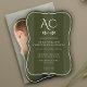 Invitation Monogramme minimal Mariage photo vert d'olive rayé
