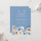 Invitation Monogramme moderne Boho Dusty Blue Floral Mariage