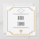 Invitations de douche nuptiale mariage retro en or jaune, noir et blanc. Une invitation à la mode des années 20. Le design se compose d'une pallette couleur jaune or, noir et blanc et de motifs inspirés du style art déco.