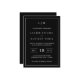 Faire-part de mariage simple avec un design moderne et élégant avec votre monogramme à deux lettres en haut, une mise en page audacieuse et vos détails entourés d'une fine bordure. Tout le texte est en blanc sur un arrière - plan noir. Les polices et les couleurs arrière - plans peuvent être changées en n'importe quelle couleur. Un design chic et design qui conviendra à un couple minimaliste.