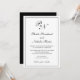 Faire-part de mariage traditionnelle en noir et blanc classique avec un design simple avec vos deux monogrammes initiaux et vos noms dans une calligraphie élégante à l'intérieur d'une mince bordure. Le dos est noir et solide. Ce design élégant est parfait pour un mariage formel.