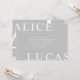 Notre collection "Ultra Modern Mariage" présente des monogrammes surdimensionnés dans une police serif qui déborde en haut et en bas, associée à un script moderne pour toutes les autres informations. Vous pouvez choisir entre différentes couleurs arrière - plans et polices de caractères et customiser facilement les produits. Consultez notre magasin pour plus d'articles de cette collection.