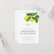 This 5x7 invitation design features a clean, minimalist black-on-white layout with a refined botanical accent. A delicate lemon citrus branch with leafy greenery is placed in the upper right corner, adding a subtle organic detail that balances the composition without overwhelming it.