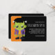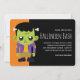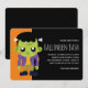 Une invitation de fête d'Halloween avec une image amusante d'Halloween représentant un monstre de Frankenstein vert.